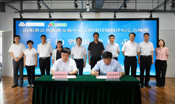 6月11日,省公共资源交易中心工程项目辅助评标定点场所签约暨揭牌仪式在济南举行。省公共资源交易中心党委书记、主任刘为民,山东高速集团党委书记、董事长周勇出席活动并致辞,山东高速集团党委副书记、董事、总经理王其峰主持仪式。省公共资源交易中心党委委员、副主任曹峰,山东高速集团执行总监张西斌代表双方签署合作备忘录。山东高速集团执行总监王博、董事会秘书徐荣斌,省公共资源交易中心、山东高速集团有关部门、山东高速信息集团等负责同志参加活动。