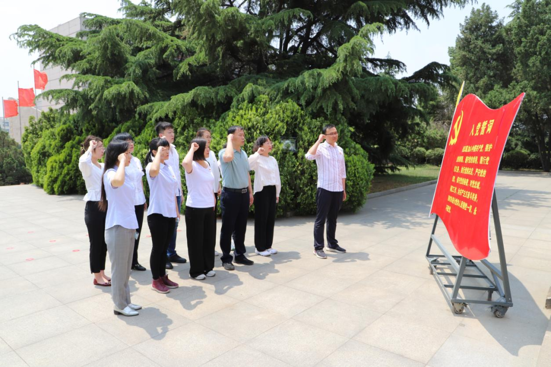 纪念塔前,李杰带领全体党员缅怀革命先烈,重温入党誓词,并讲授专题党课。